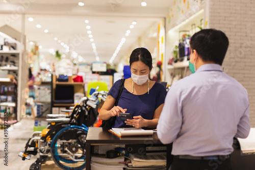 app, business, check, commerce, counter, client, epidemic, indoor, lifestyle, mall, man, mask, medicals, man, mobile, mobile phone, online, ordering, outbreak, pandemic, pay, paying, payment, people, phone, protection, protective, purchase, quarantine, retail, retailer, safety, sale, salesman, seller, service, shop, shopping, store, technology, transaction, 2, wireless, woman, work