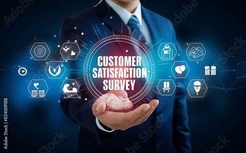 Customer satisfaction survery, User give rating to service experience on online application for Customer review satisfaction feedback survey concept.