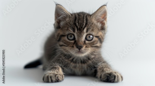 cat, kitten, adorable, furry, young, small, animal, pet, cute, upright, innocence, playful, domestic, meow, whisker, fur, eye, stripes, tabby, portrait, sitting, calm, cosy, relaxed, fluffy, soft, light, background, sharpened, singular, detail, expression, nature, curious, tender, visual, breed, photograph, high fidelity, quality, charming