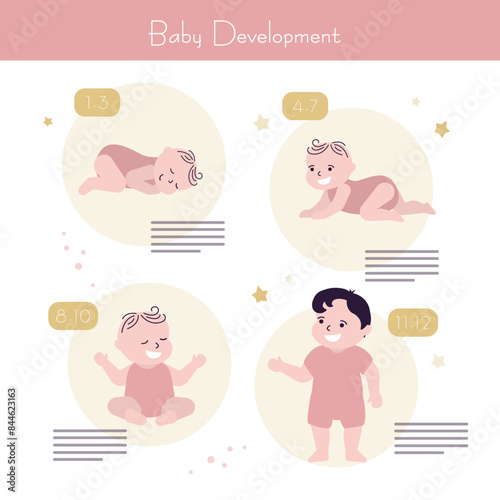 infant, pediatric, health care, asian, childcare center, nursing, illustration, caucasian, active, racked, set, evolution, age, walk, year, training, growing, rolling, little, children, step, growth, stage, newborn, birth, childhood, process, development, toddler, children, diaper, boy, first, crawling, timeline, progress, baby, month, standing, cute girl, learn, grow, early