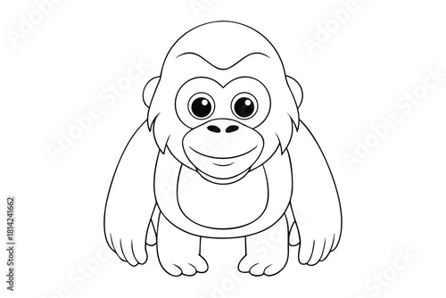 gorilla, baby, animal, primate, ape, jungle, wildlife, mammal, face, head, eye, nose, mouth, hand, foot, body, outline, drawing, vignetting, colouring, book, page, cute, cartoon, character, graphic, design, simple, monochrome, black, nature, zoo, safari, young, infant, friendly, adorable, funny, happy, portrait, front, view, clip art, symbol