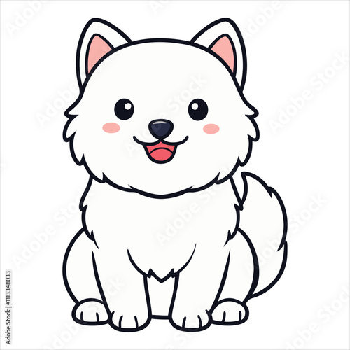 samoyed, pet, doggy, illustration, toy, dog, animal, cartoon, mammal, character, baby, pet, dog, cute, isolated, domestic, sitting