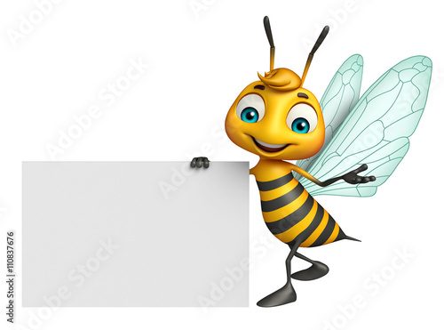 cute Bee cartoon character with white board