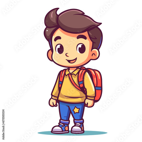Cute Boy Going To School , Cartoon , Illustration, Cartoon PNG