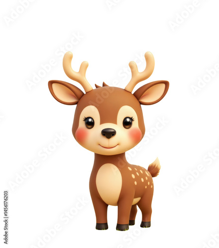 Cute Brown Deer, Pink Cheeks, Transparent Background