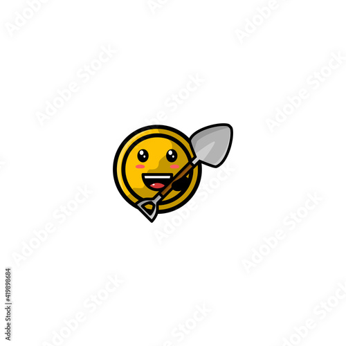 Cute Builder Coin Cartoon Character Vector Illustration Design. Outline, Cute, Funny Style. Recomended For Children Book, Cover Book, And Other.