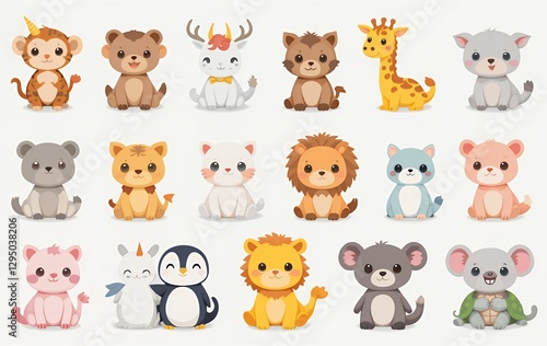 animal, sitting, cartoon, monkey, bear, cervid, giraffe, koala, tiger, cat, lion, penguin, unicorn, illustration, mammal, character, drawing, design, graphic, wildlife, fauna, clip art, isolated, domestic, creature, flat, playful, smiling, zoo, safari, decoration, baby, children, childcare center, kindergarten, cheerful, whimsical