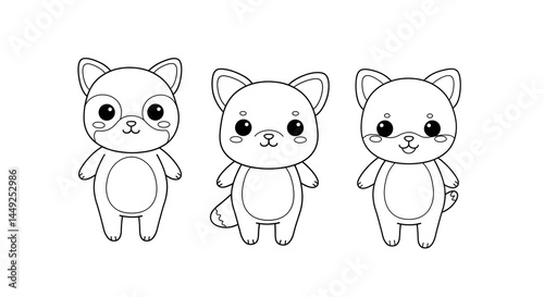Cute Cartoon Animals Line Art Illustration for Coloring Book