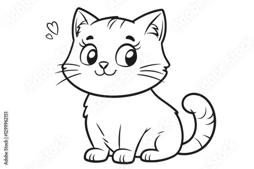cat, cartoon, cute, kitten, pet, animal, felino, adorable, sitting, drawing, illustration, line art, design, graphic, vector, love, heart, happy, sweet, charming, simple, minimalist, children, children, book, greeting card, logotype, mascot, icon, isolated, white background, domestic, playful, mammal