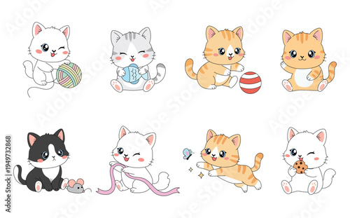 Cute Cartoon Cats Playing with Toys Collection