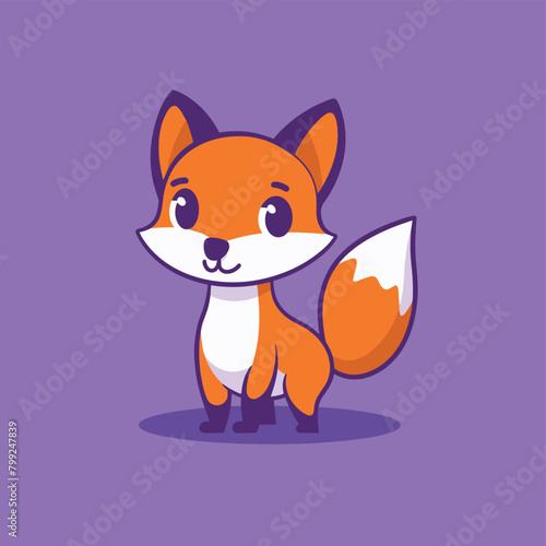 Cute cartoon fox standing on a purple background.