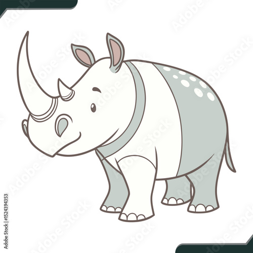Cute Cartoon Rhino Illustration with Rounded Body in Vector Format for Creative Projects