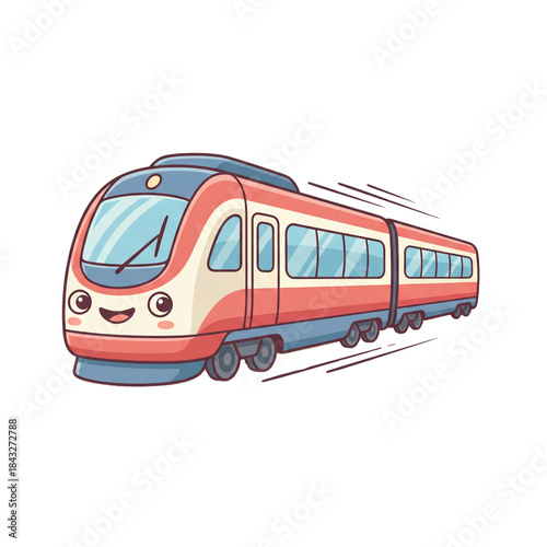 Cute Cartoon Train Clip Art, Friendly Locomotive Illustration on White Background, Rail Travel