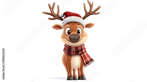 reindeer, christmas, holiday, season, winter, cervid, animal, cute, adorable, festive, joyful, celebration, santa, hat, red, white, brown, illustration, character, cartoon, graphic, design, art, digital, happy, merry, fun, celebratory, cheerful, goodwill, tradition, family, friends, gift, present, snow, snowflake, jolly