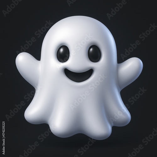 halloween, ghost, cute, three-dimensional, skittish, smiling, white, soft, minimal, glossy, cartoon, friendly, decoration, render, toy, design, modern, holiday, october, horror, character, adorable, shiny
