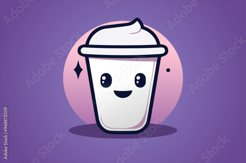 hot drink, cute, drink, vector, illustration, happy, character, drawing, smile, cup, adorable, purple, background, cartoon, fun, whipped, cream, milkshake, sparkle, pink, lid, playful, joyful, glossy, smiley, pastel, cheerful, beverage, icon, menu, eatery, cafes, breakfast, cappuccino, art, poster, food, banner, expressive, eye, funny