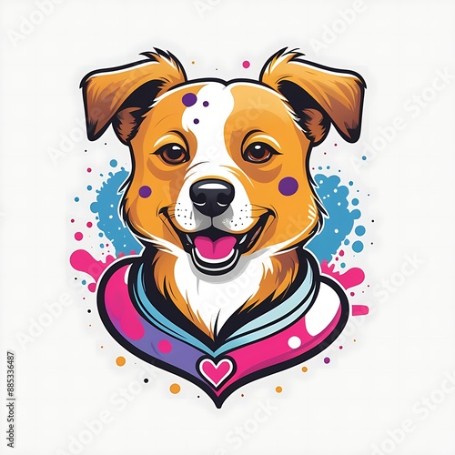 Cute dog head mascot design, minimalist heart shape symbol design with dog head for t-shirt or jacket design, dog lovers community, simple color logo design