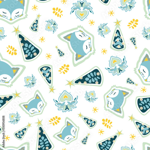 christmas, fox, holiday, print, animal, blue, card, cartoon, celebration, cheerful, childish, children, coloured, comic, comical, leaf, christmas tree, december, decor, decoration, drawing, fauna, festive, fir tree, forest, cute, graphic, green, greeting, happy, nubes, natural, icy, ornament, poster, repetition, season, seamless, winter, star, yellow, textile, white, wildlife, wrapping, christmas, zoo