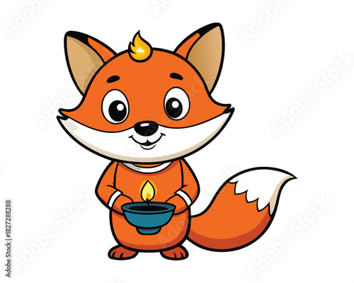 cute fox lighting diwali diya lamp colorful cartoon vector illustration design