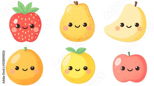Cute fruit characters with big eyes and smiles