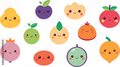 cute, fruit, icon, set, japanese, style, vector, graphic, design, illustration, download, free, pack, collection, digital, art, web, app, print, sticker, character, playful, fun, adorable, cherry, melon, berry, apple, orange, lemon, grape, banana, peach, watermelon, avocado, kiwi, mango, strawberry