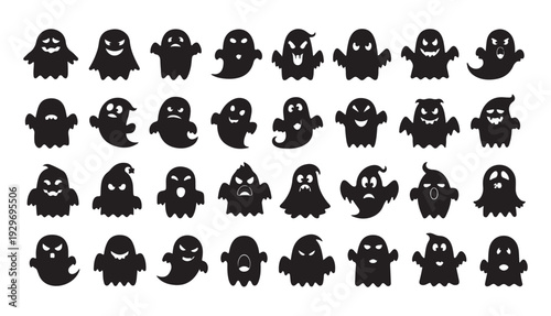 Cute Ghost Icon Set Halloween Character Symbol Collection Isolated on White Background