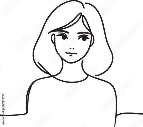 Cute Girl Continuous Line Art Drawing – Black Vector