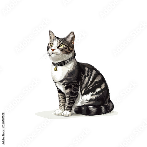 Cute Grey Tabby Cat Sitting Elegantly in Bright Studio Setting