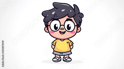 Cute illustrated boy with glasses and smile. Generative AI