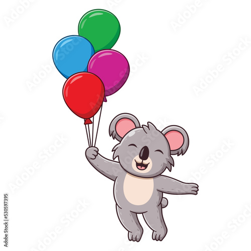 Cute Koala Floating With Balloon Cartoon. Animal Icon Concept. Flat Cartoon Style. Suitable for Web Landing Page, Banner, Flyer, Sticker, Card