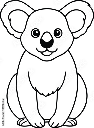 Cute koala sitting cartoon coloring page illustration vector. Line art of koala bear with tree cartoon design. Koala cartoon black outlines vector illustration.