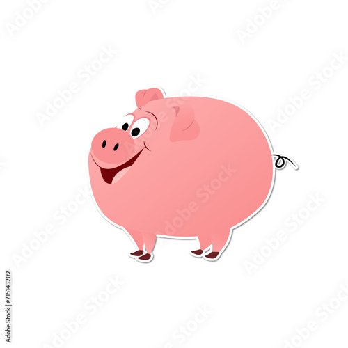 Cute little piglet sticker. Vector drawing of a cute pink pig.