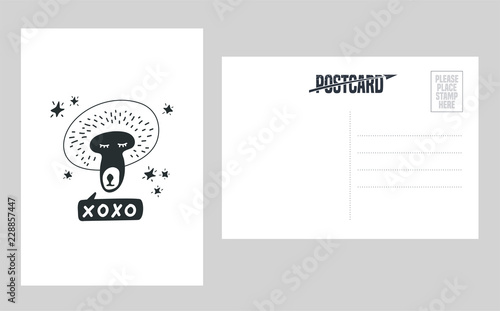 monkey, cute, animal, vector, baby, head, illustration, postcard, cartoon, character, face, art, design, print, post, black-and-white, hand, drawn, lettering, speech bubble, mail, isolated, doodle, happy, send, funny, ink, zoo, wildlife, phrase, wild, background, sending, gift, card, friends, graphic, modern, greeting, travelling, drawing, text, style, airmail, address