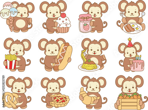 Cute Monkey vector icon. Funny baby Monkey animal series stock illustration. life of fluffy Monkey designs.