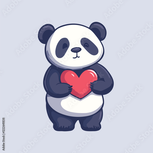 Cute Panda Holding Big Heart Vector Cartoon Illustration