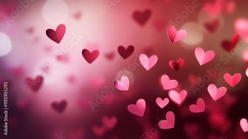 Cute paper cut hearts float in the air and fly freely, Valentine's Day celebration background