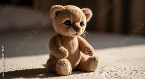 plush, lion, toy, sitting, bed, warmth, sunlight, soft, cosy, adorable, children, comfort, animal, interior, playful, children, cuddly, fabric, brown, indoor, light, fuzzy, stuffed, smile, happy, decor, home, relaxation, cheerful, innocence, happiness, childhood, love, gift, textured, companion, small, plush toy, playtime, joy