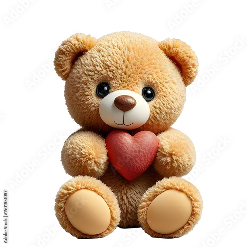teddy bear, plush, toy, stuffed animal, nubes, red heart, sparkly, decoration, cute, adorable, soft, fuzzy, beige, small, gift, valentine, february 14, love, romantic, holiday, greeting, celebration, closeup, sweet, friendly, cuddly, lovely, present, isolated, white background