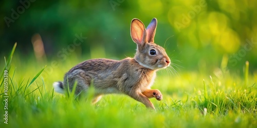 Cute rabbit happily hopping around in lush green grass, rabbit, cute, adorable, happy, grass, outdoors, wildlife, nature, fluffy, fur