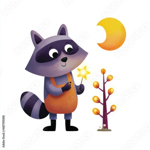 raccoon, character, animal, nature, whimsical, tree, star, night, moon, cute, illustration, design, fantasy, magic, playful, colourful, artwork, children, fun, creativity, adventure, vibrant, joyful, cartoon, graphic, smiling, friendly, bright, imaginative, baby, environment, 1, childlike, cheerful, art, adorable, scene, magical, high-coloured, colours