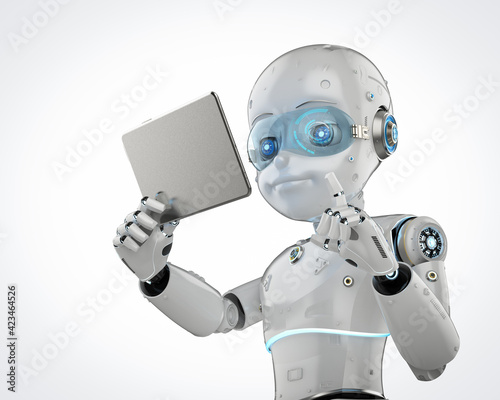 cute robot with digital tablet