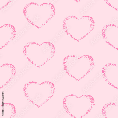 Cute seamless pattern with hearts in pink color on background. Vector illustration. Design for greeting cards, plaques; printing, invitation.