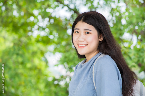Cute smile young teen Asian fot women university student portait with healthy good teeth