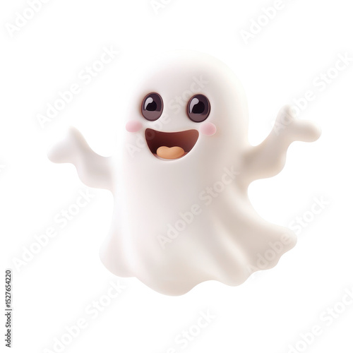 Cute smiling ghost character with big eyes and cheerful expression on a white background