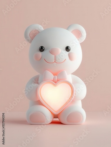 Cute teddy bear lamp holding a heart, perfect for a cozy or romantic ambiance.