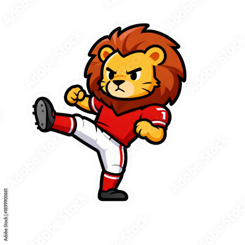 tiger, football, soccer, sticker, cute, cartoon, animal, sport, fierce, illustration, mascot, action, kick, ball, strong, fun, children, isolated, white background, vector, clip art, digital artwork, commercial, character, uniform, wild animal, energetic, game, athlete, design, graphic, simple, colourful, modern, fantasy, animation, dynamic, power, strength