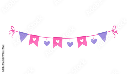 Cute Valentine’s Day Love Garland with Heart Flags and Hanging Hearts, Pink Romantic Banner Decoration for Valentine’s Day, Wedding, Anniversary, Party Decor, Greeting Cards, Invitations