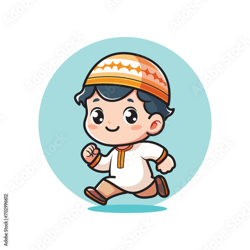 cute vector design illustration of a small Muslim child