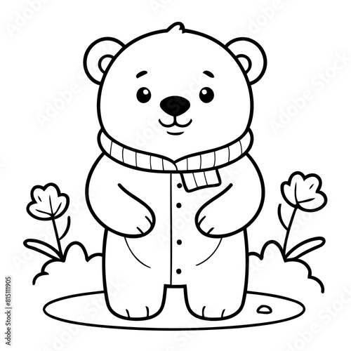 Cute vector illustration Polarbear drawing for toddlers colouring page