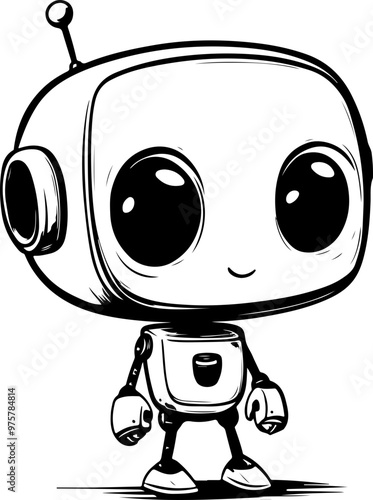 Cute Vector Robot Character with Big Eyes and Smiling Face